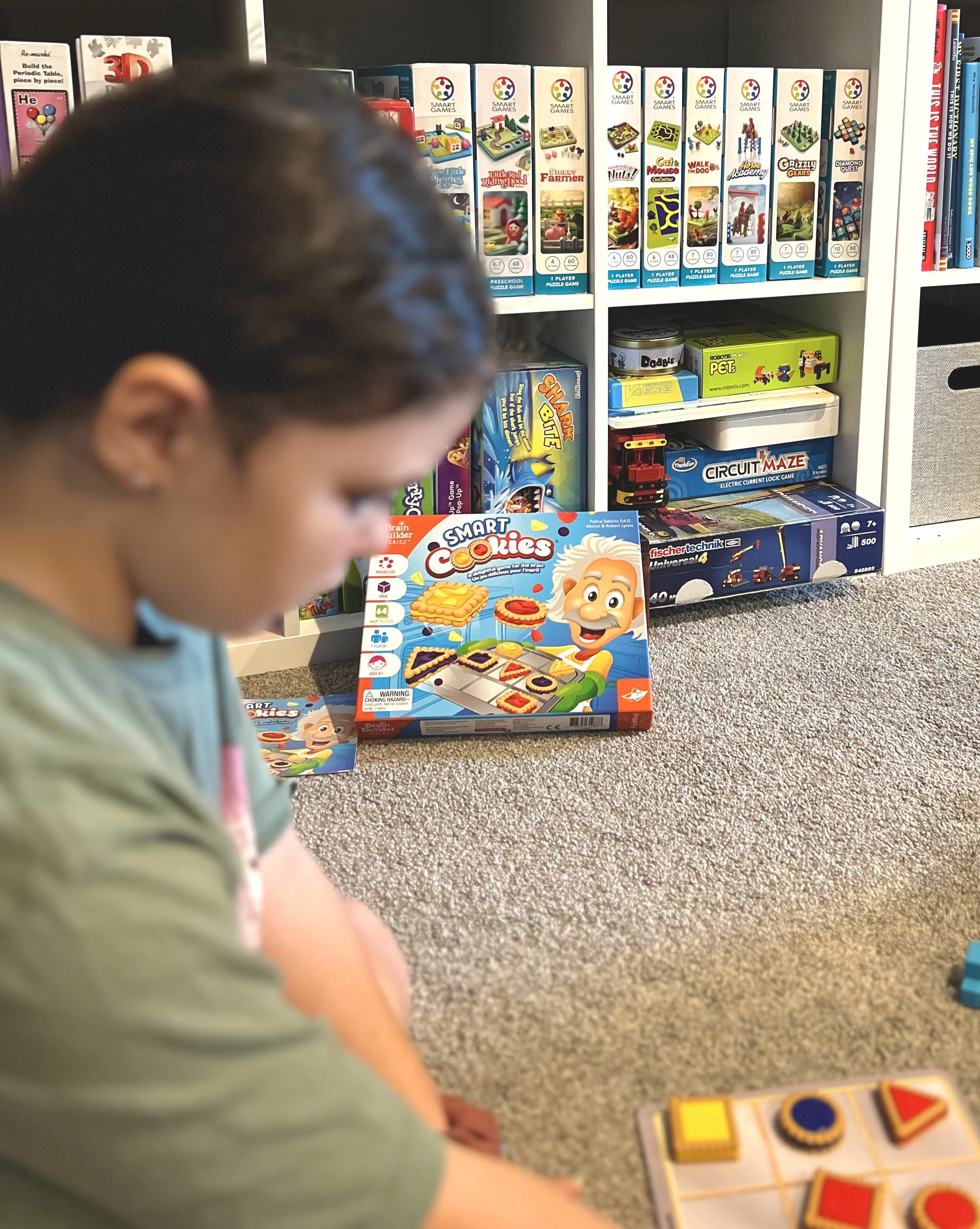 I absolutely love, love Smart Games! They really specialize in single player, problem solving games. I have used these since my girls started homeschool at first grade and preschool. These games are great for those families who have more than one kiddo too, because you can work with one child while the other works on deductive reasoning and problem solving skills. Smart Games offers a wide variety of game options that span all ages and everyone in our home has loved playing with them—even the adults!